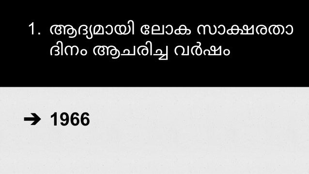 - 2. 1. ആദ്യമായി േലാക സാക്ഷരതാ ദിനം ആചരിച്ച വർഷം ➔ 1966
