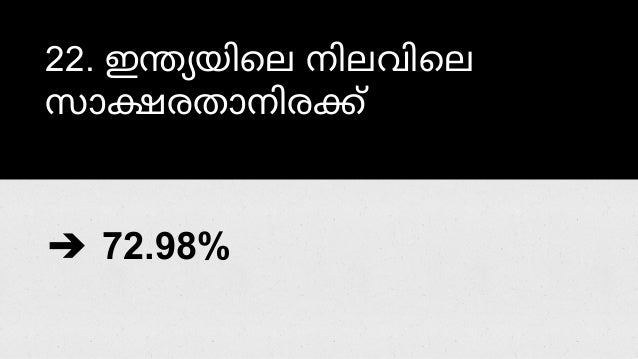- 24. ൽത്ത് േലണിംഗ് ഗുഡ്വിൽ അംബാസഡറായി ➔ 72.98% 22. ഇന്ത്യയിെല നിലവിെല സാക്ഷരതാനിരക്ക്