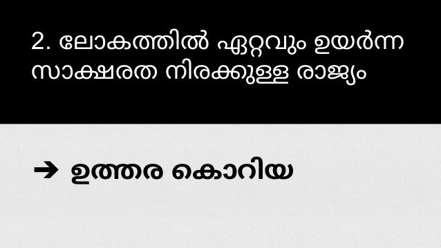 - 3. 2. േലാകത്തിൽ ഏറ്റവും ഉയർന്ന സാക്ഷരത നിരക്കുള്ള രാജ്യം ➔ ഉത്തര െകാറിയ