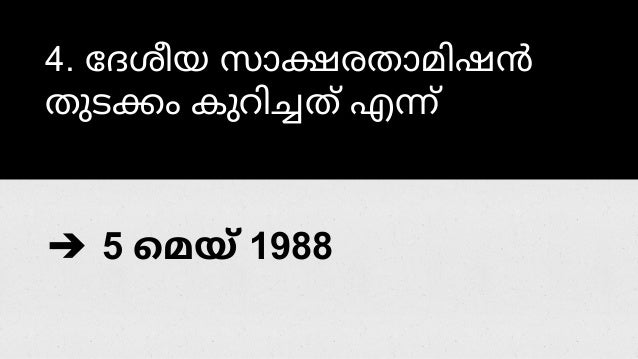 - 5. ➔ 5 െമയ് 1988 4. േദശീയ സാക്ഷരതാമിഷൻ തുടക്കം കുറിച്ചത് എന്ന്