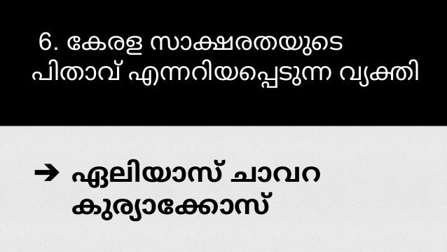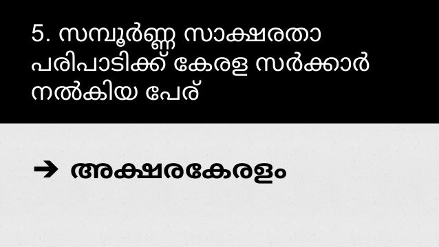 - 7. ➔ അക്ഷരേകരളം 5. സമ്പൂർണ്ണ സാക്ഷരതാ പരിപാടിക്ക് േകരള സർക്കാർ നൽകിയ േപര്